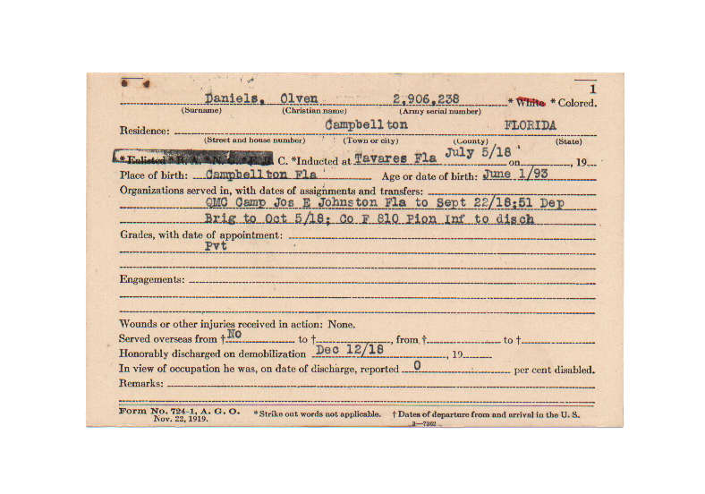 Florida. Military Dept. Olven Daniels. . State Archives of Florida, Florida Memory. Accessed 4 Feb. 2026.<https://www.floridamemory.com/items/show/210902>