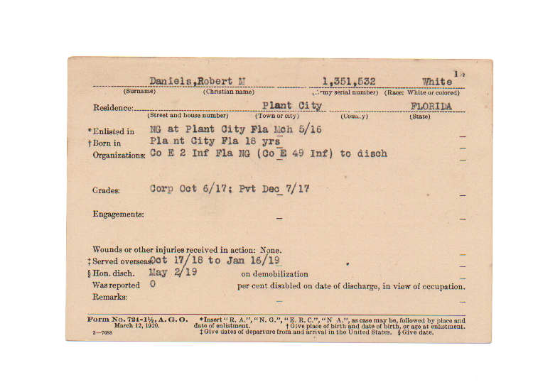 Florida. Military Dept. Robert M Daniels. . State Archives of Florida, Florida Memory. <https://www.floridamemory.com/items/show/210908>, accessed 4 February 2026.