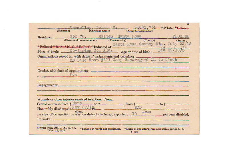 Florida. Military Dept. Dennis Hugh Dannelley. . State Archives of Florida, Florida Memory. Accessed 5 Feb. 2026.<https://www.floridamemory.com/items/show/210927>