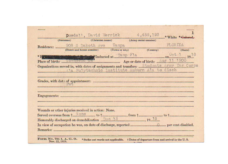 Florida. Military Dept. David Merrick Dowdell. . State Archives of Florida, Florida Memory. <https://www.floridamemory.com/items/show/212659>, accessed 21 December 2025.