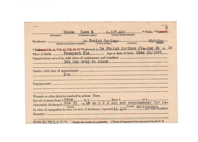 Florida. Military Dept. Leon L Drake. . State Archives of Florida, Florida Memory. Accessed 23 Dec. 2025.<https://www.floridamemory.com/items/show/212699>