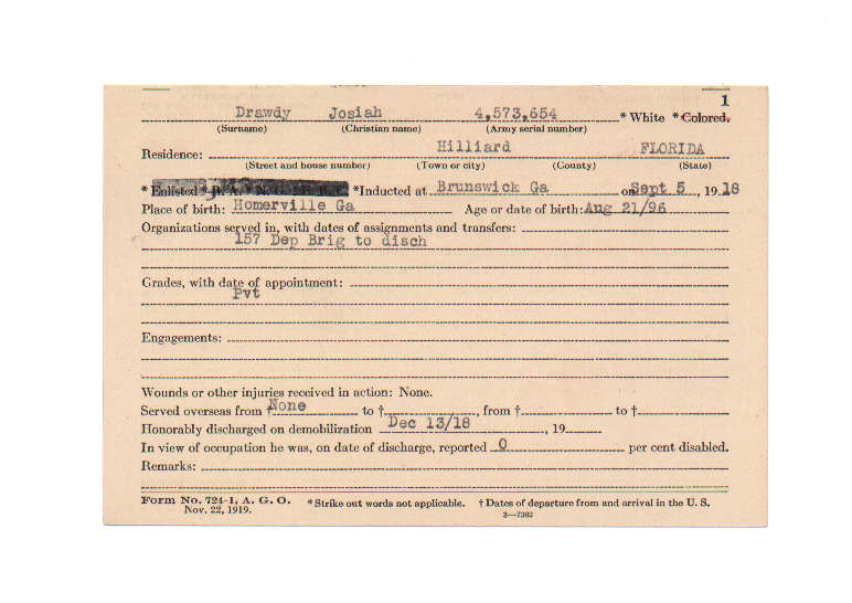 Florida. Military Dept. Josiah Drawdy. . State Archives of Florida, Florida Memory. Accessed 24 Dec. 2025.<https://www.floridamemory.com/items/show/212710>