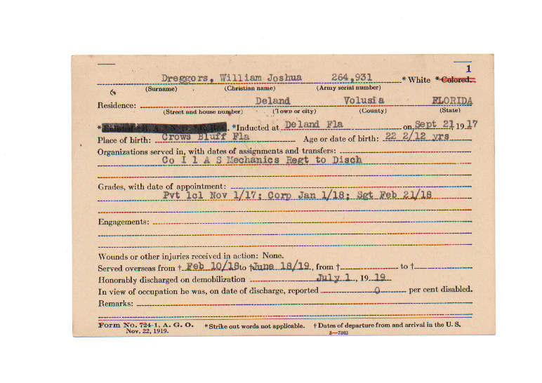 Florida. Military Dept. William Joshua Dreggors. . State Archives of Florida, Florida Memory. <https://www.floridamemory.com/items/show/212720>, accessed 25 December 2025.