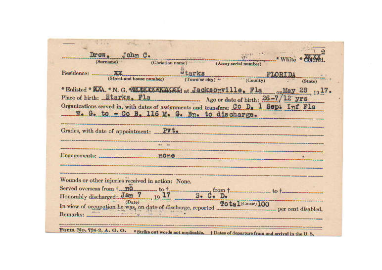 Florida. Military Dept. John C Drew. . State Archives of Florida, Florida Memory. Accessed 26 Dec. 2025.<https://www.floridamemory.com/items/show/212732>