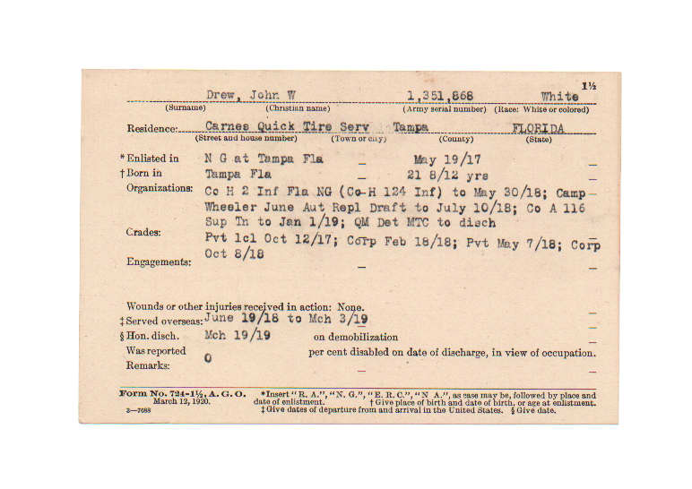 Florida. Military Dept. John W Drew. . State Archives of Florida, Florida Memory. Accessed 26 Dec. 2025.<https://www.floridamemory.com/items/show/212733>