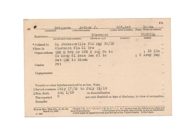 Florida. Military Dept. Arthur J Driggers. . State Archives of Florida, Florida Memory. <https://www.floridamemory.com/items/show/212738>, accessed 26 December 2025.