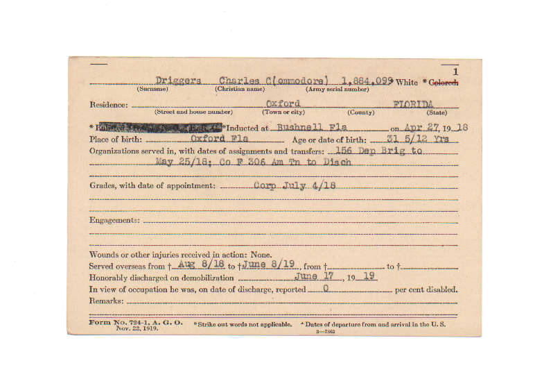 Florida. Military Dept. Charles Commodore Driggers. . State Archives of Florida, Florida Memory. <https://www.floridamemory.com/items/show/212739>, accessed 26 December 2025.