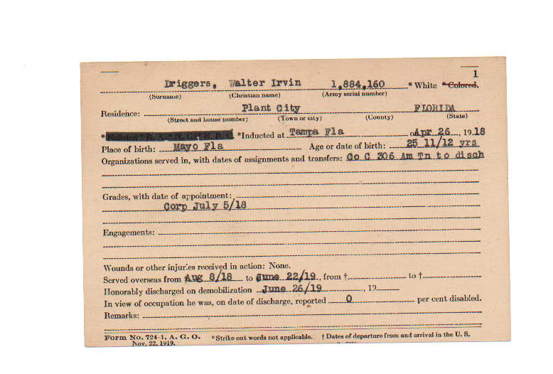 Florida. Military Dept. Walter Irvin Driggers. . State Archives of Florida, Florida Memory. <https://www.floridamemory.com/items/show/212753>, accessed 27 December 2025.