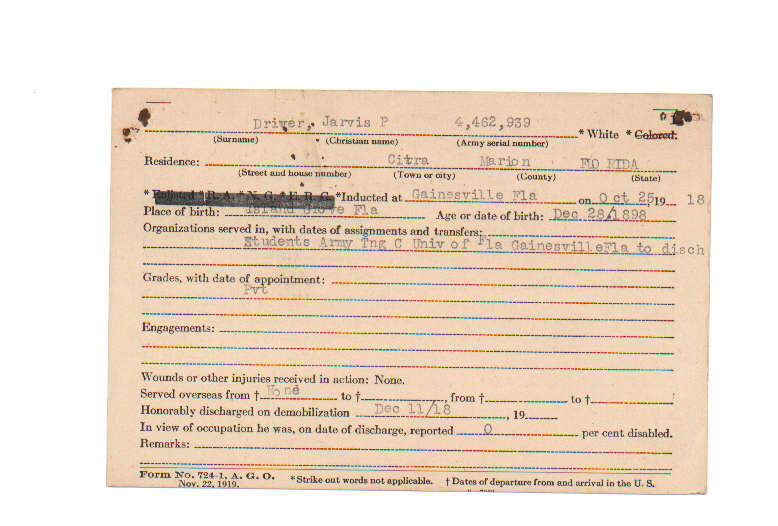 Florida. Military Dept. Jarvis P Driver. . State Archives of Florida, Florida Memory. <https://www.floridamemory.com/items/show/212760>, accessed 28 December 2025.