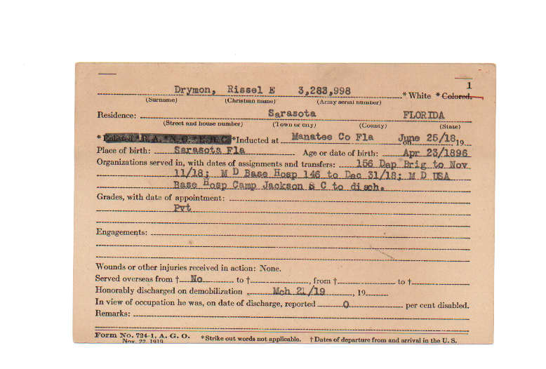 Florida. Military Dept. Rissel E Drymon. . State Archives of Florida, Florida Memory. <https://www.floridamemory.com/items/show/212770>, accessed 29 December 2025.