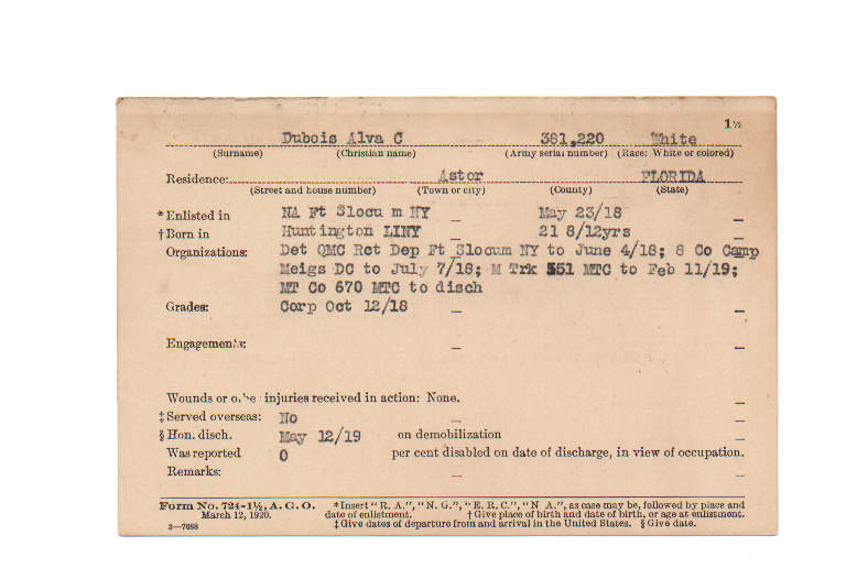 Florida. Military Dept. Alva C Dubois. . State Archives of Florida, Florida Memory. Accessed 29 Dec. 2025.<https://www.floridamemory.com/items/show/212775>