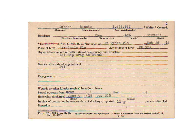 Florida. Military Dept. Bennie Dubose. . State Archives of Florida, Florida Memory. <https://www.floridamemory.com/items/show/212779>, accessed 29 December 2025.