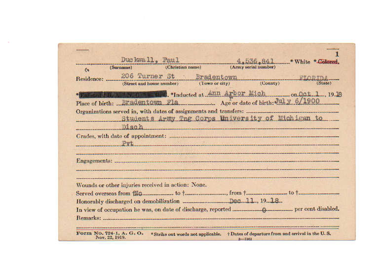 Florida. Military Dept. Paul Duckwall. . State Archives of Florida, Florida Memory. Accessed 31 Dec. 2025.<https://www.floridamemory.com/items/show/212796>