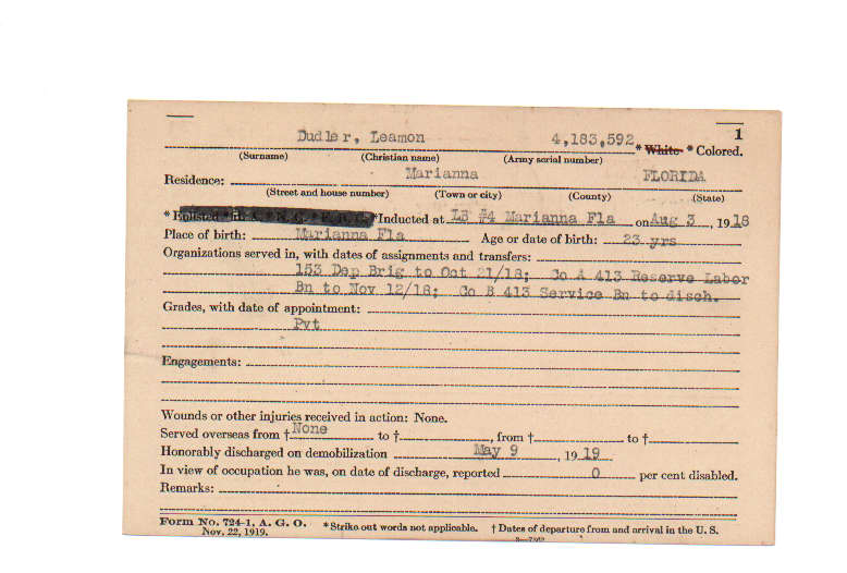 Florida. Military Dept. Leamon Dudler. . State Archives of Florida, Florida Memory. <https://www.floridamemory.com/items/show/212799>, accessed 31 December 2025.