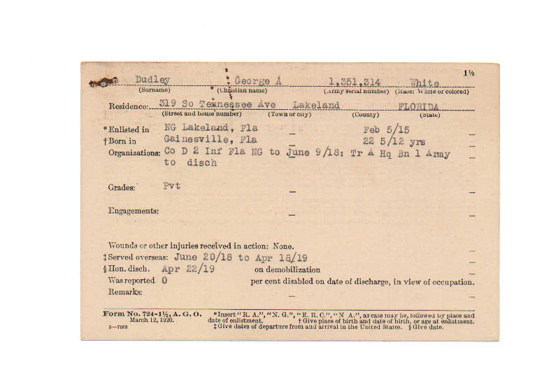 Florida. Military Dept. George A Dudley. . State Archives of Florida, Florida Memory. <https://www.floridamemory.com/items/show/212801>, accessed 31 December 2025.
