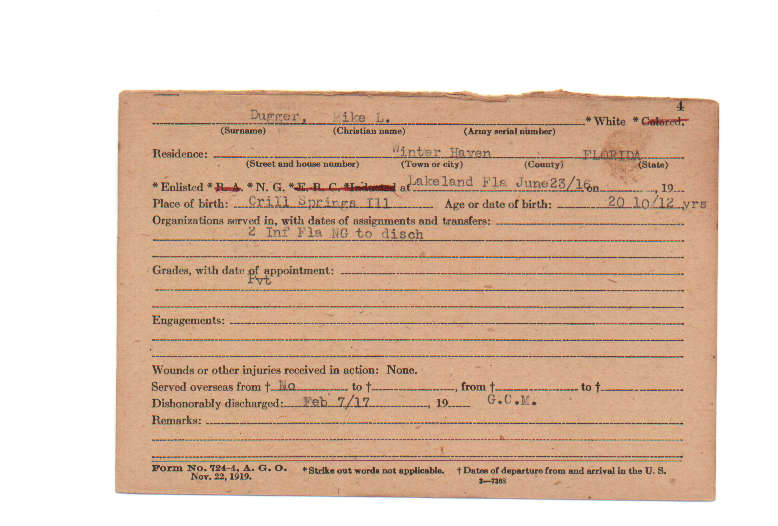 Florida. Military Dept. Mike L Dugger. . State Archives of Florida, Florida Memory. <https://www.floridamemory.com/items/show/212826>, accessed 2 January 2026.