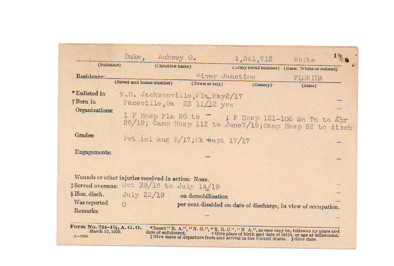 Florida. Military Dept. Aubrey O Duke. . State Archives of Florida, Florida Memory. <https://www.floridamemory.com/items/show/212828>, accessed 2 January 2026.