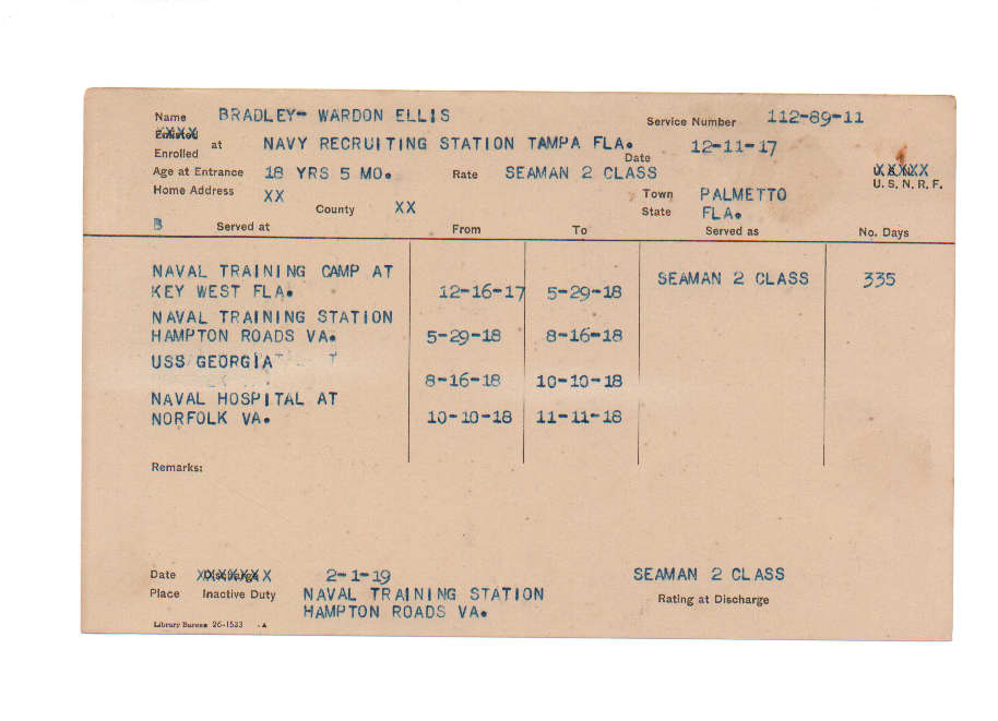 Florida. Military Dept. Wardon Ellis Bradley. . State Archives of Florida, Florida Memory. <https://www.floridamemory.com/items/show/214255>, accessed 6 December 2025.