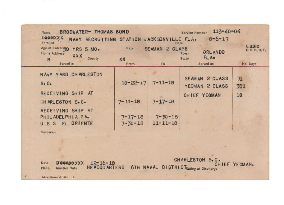 Florida. Military Dept. Thomas Bond Brodwater. . State Archives of Florida, Florida Memory. <https://www.floridamemory.com/items/show/214256>, accessed 6 December 2025.