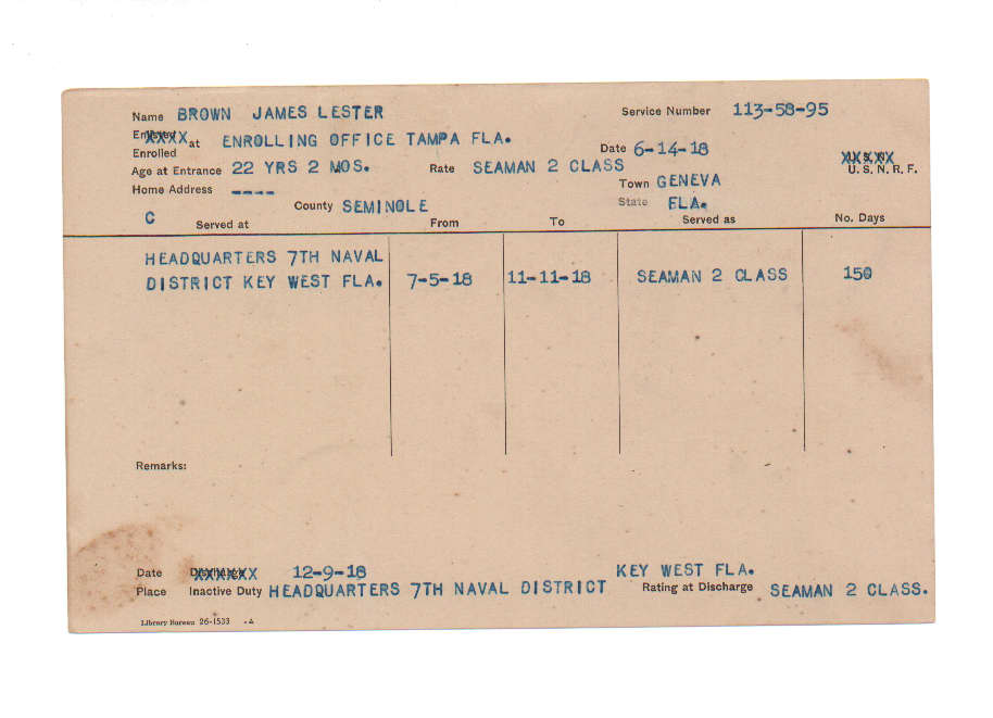 Florida. Military Dept. James Lester Brown. . State Archives of Florida, Florida Memory. <https://www.floridamemory.com/items/show/216495>, accessed 10 December 2025.