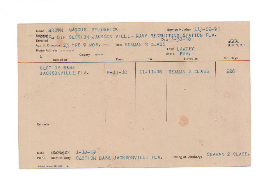 Florida. Military Dept. Marcus Frederick Brown. . State Archives of Florida, Florida Memory. <https://www.floridamemory.com/items/show/216503>, accessed 6 December 2025.