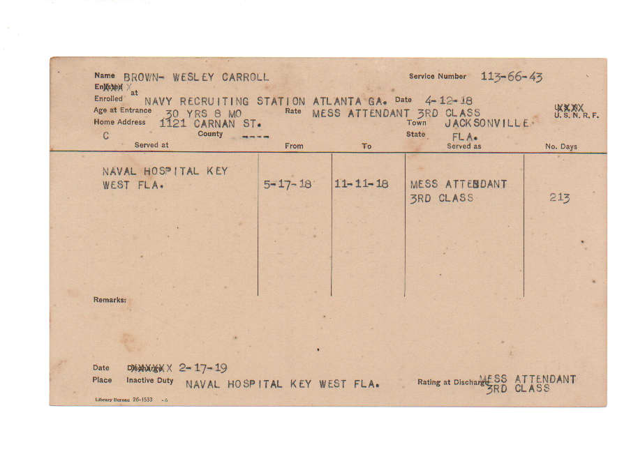 Florida. Military Dept. Wesley Carroll Brown. . State Archives of Florida, Florida Memory. <https://www.floridamemory.com/items/show/216518>, accessed 6 December 2025.