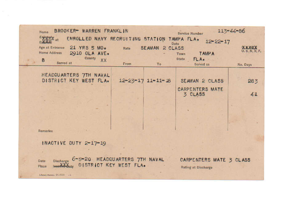 Florida. Military Dept. Warren Franklin Brooker. . State Archives of Florida, Florida Memory. <https://www.floridamemory.com/items/show/216524>, accessed 6 December 2025.