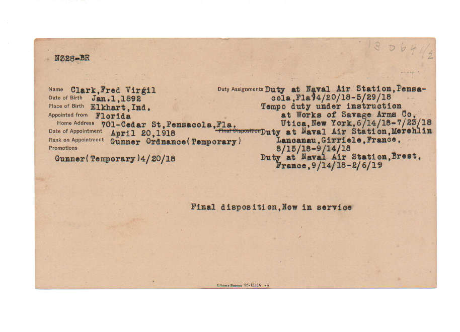 Florida. Military Dept. Fred Virgil Clark. . State Archives of Florida, Florida Memory. <https://www.floridamemory.com/items/show/219189>, accessed 3 January 2026.