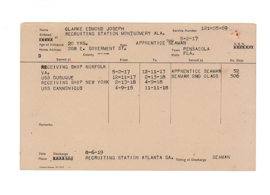 Florida. Military Dept. Edmond Joseph Clarke. . State Archives of Florida, Florida Memory. Accessed 2 Jan. 2026.<https://www.floridamemory.com/items/show/219193>