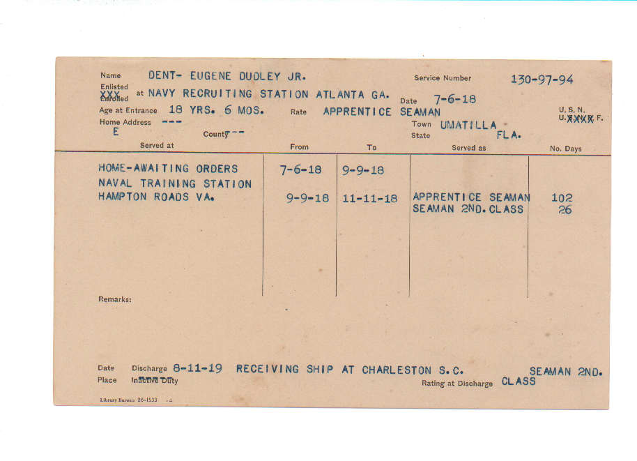 Florida. Military Dept. Eugene Dudley Dent. . State Archives of Florida, Florida Memory. <https://www.floridamemory.com/items/show/219198>, accessed 2 January 2026.