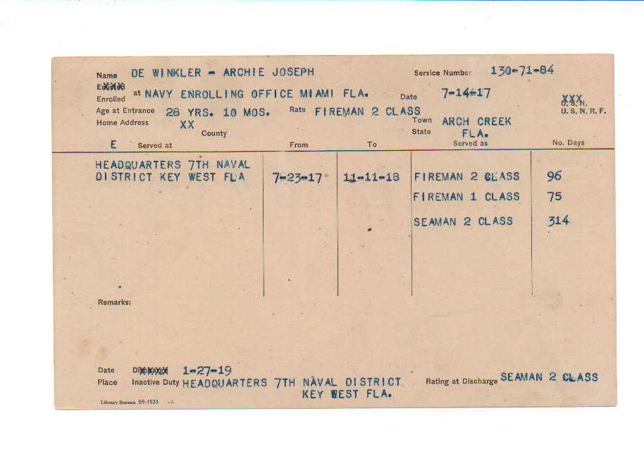 Florida. Military Dept. Archie Joseph De Winkler. . State Archives of Florida, Florida Memory. <https://www.floridamemory.com/items/show/219206>, accessed 1 January 2026.