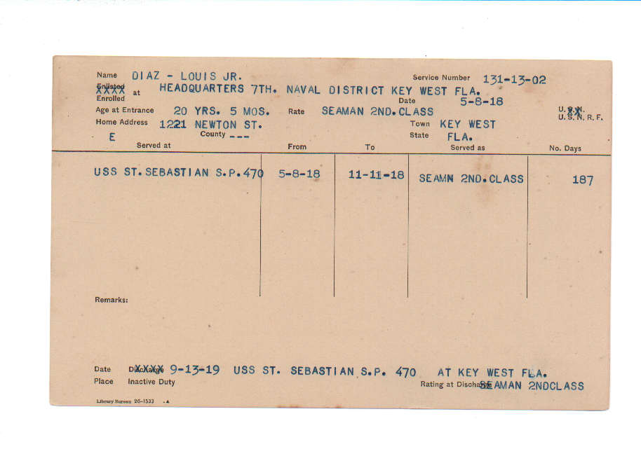 Florida. Military Dept. Louis Diaz. . State Archives of Florida, Florida Memory. <https://www.floridamemory.com/items/show/219211>, accessed 1 January 2026.