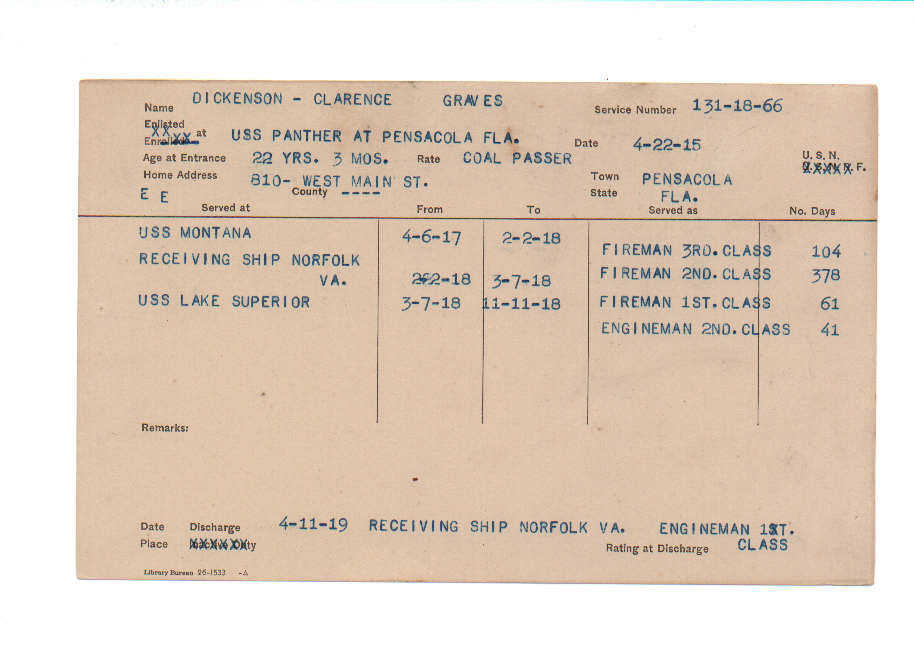 Florida. Military Dept. Clarence Graves Dickenson. . State Archives of Florida, Florida Memory. <https://www.floridamemory.com/items/show/219213>, accessed 1 January 2026.