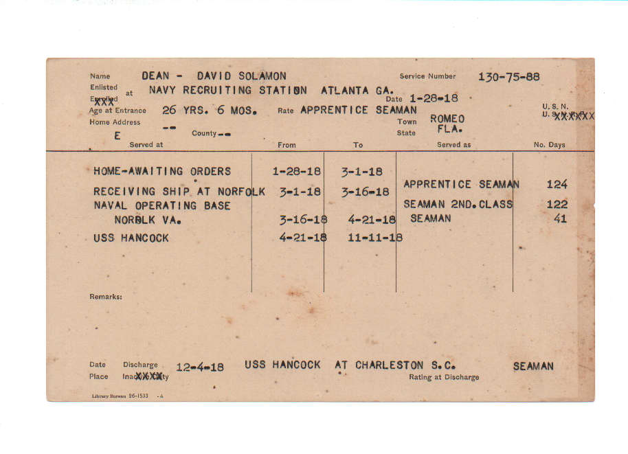 Florida. Military Dept. David Solamon Dean. . State Archives of Florida, Florida Memory. <https://www.floridamemory.com/items/show/219217>, accessed 1 January 2026.