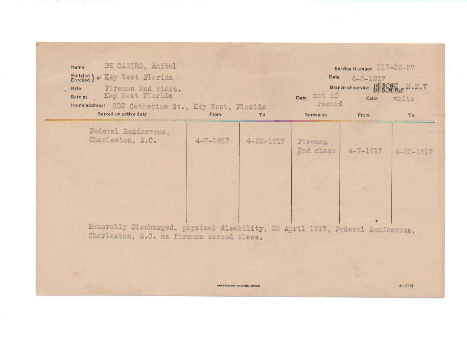 Florida. Military Dept. Anibel DeCastro. . State Archives of Florida, Florida Memory. Accessed 31 Dec. 2025.<https://www.floridamemory.com/items/show/219226>