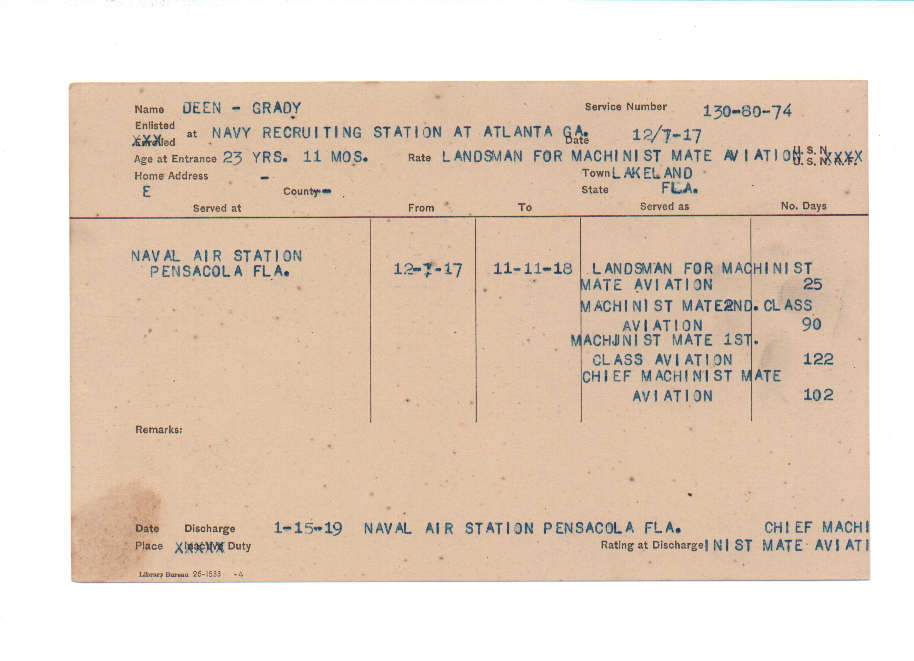 Florida. Military Dept. Grady Deen. . State Archives of Florida, Florida Memory. <https://www.floridamemory.com/items/show/219227>, accessed 31 December 2025.