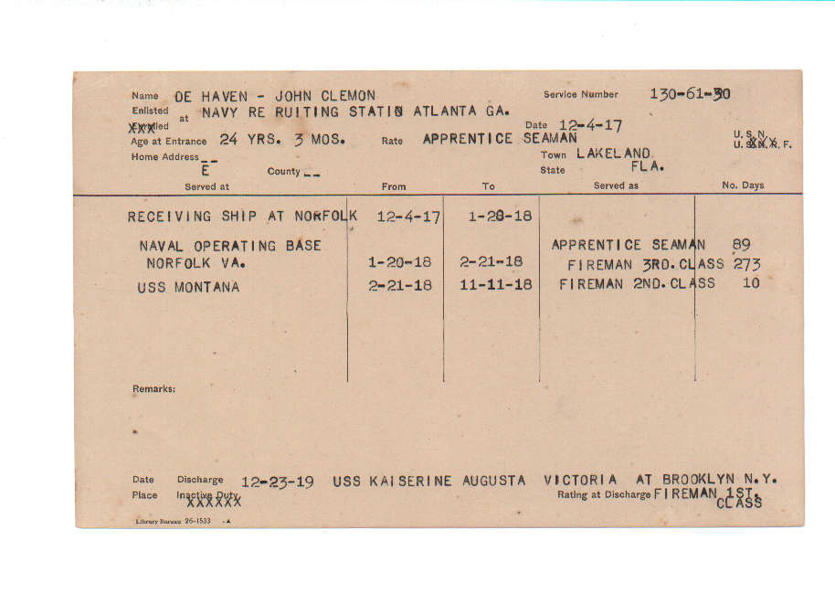 Florida. Military Dept. John Clemon DeHaven. . State Archives of Florida, Florida Memory. <https://www.floridamemory.com/items/show/219232>, accessed 31 December 2025.