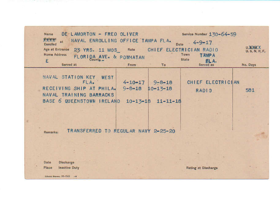 Florida. Military Dept. Fred Oliver De Lamorton. . State Archives of Florida, Florida Memory. <https://www.floridamemory.com/items/show/219235>, accessed 30 December 2025.