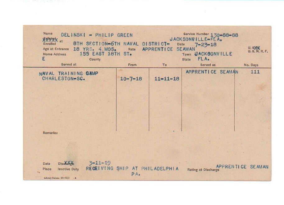 Florida. Military Dept. Philip Green Delinski. . State Archives of Florida, Florida Memory. Accessed 29 Dec. 2025.<https://www.floridamemory.com/items/show/219245>