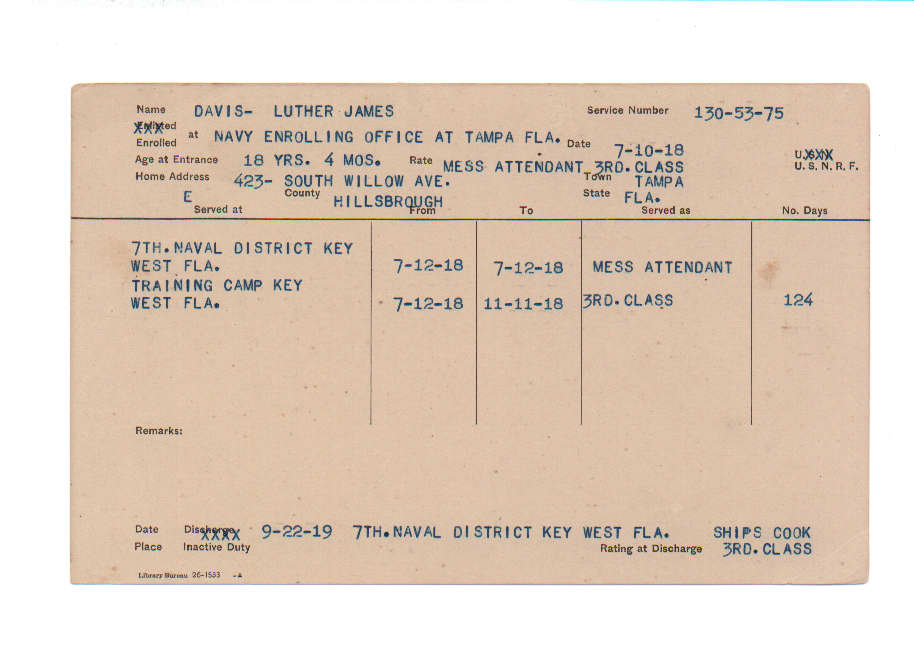 Florida. Military Dept. Luther James Davis. . State Archives of Florida, Florida Memory. <https://www.floridamemory.com/items/show/219264>, accessed 28 December 2025.