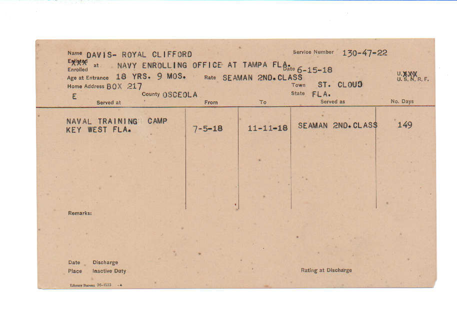 Florida. Military Dept. Royal Clifford Davis. . State Archives of Florida, Florida Memory. <https://www.floridamemory.com/items/show/219269>, accessed 27 December 2025.