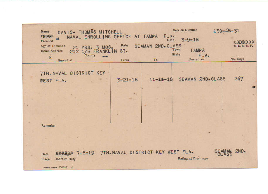 Florida. Military Dept. Thomas Mitchell Davis. . State Archives of Florida, Florida Memory. <https://www.floridamemory.com/items/show/219271>, accessed 27 December 2025.
