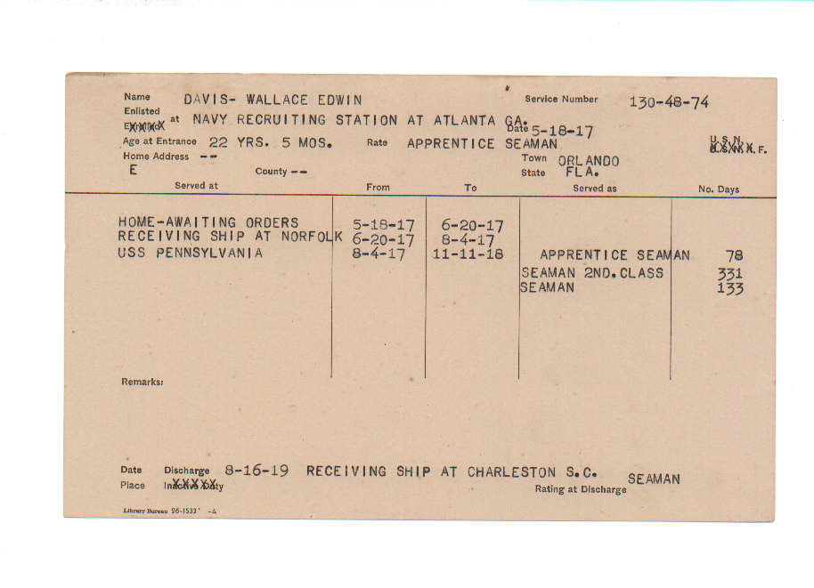 Florida. Military Dept. Wallace Edwin Davis. . State Archives of Florida, Florida Memory. Accessed 27 Dec. 2025.<https://www.floridamemory.com/items/show/219274>