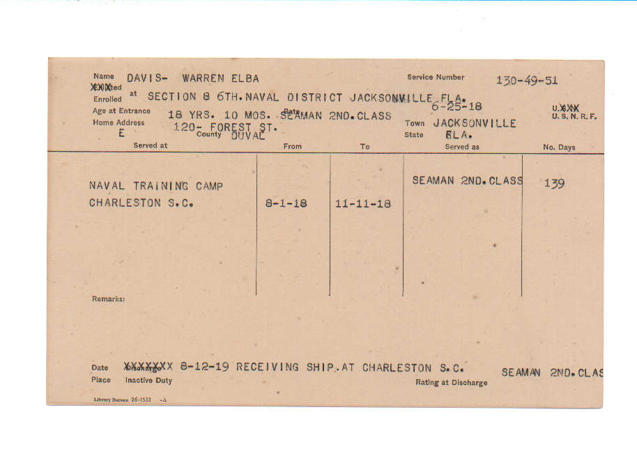 Florida. Military Dept. Warren Elba Davis. . State Archives of Florida, Florida Memory. <https://www.floridamemory.com/items/show/219275>, accessed 27 December 2025.