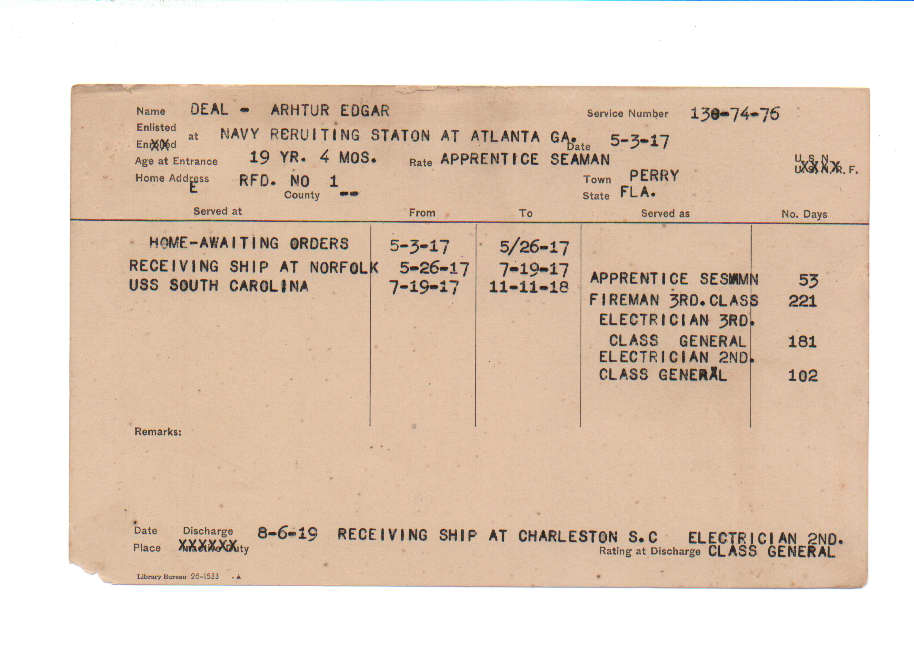 Florida. Military Dept. Arthur Edgar Deal. . State Archives of Florida, Florida Memory. <https://www.floridamemory.com/items/show/219281>, accessed 26 December 2025.