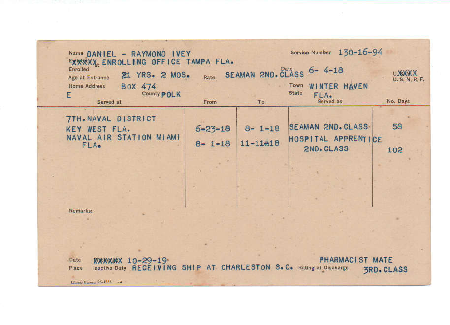 Florida. Military Dept. Raymond Ivey Daniel. . State Archives of Florida, Florida Memory. <https://www.floridamemory.com/items/show/219286>, accessed 26 December 2025.