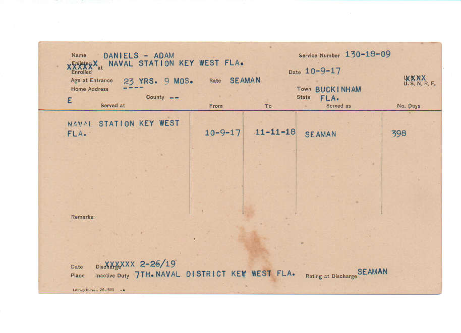 Florida. Military Dept. Adam Daniels. . State Archives of Florida, Florida Memory. Accessed 26 Dec. 2025.<https://www.floridamemory.com/items/show/219288>