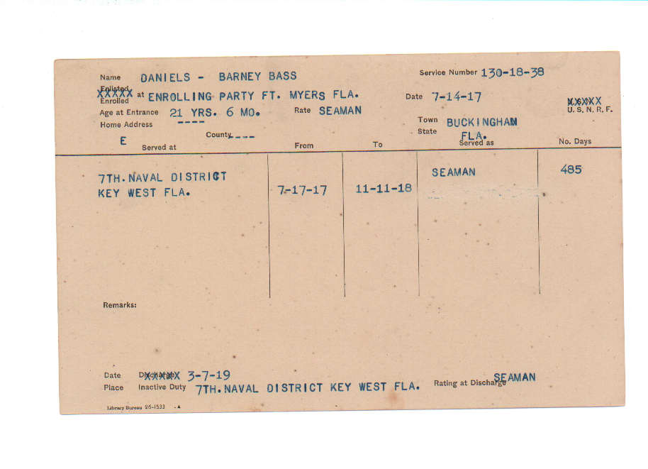 Florida. Military Dept. Barney Bass Daniels. . State Archives of Florida, Florida Memory. Accessed 26 Dec. 2025.<https://www.floridamemory.com/items/show/219289>