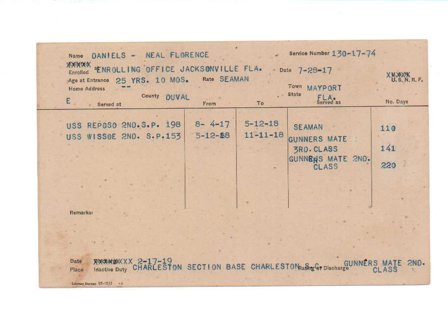 Florida. Military Dept. Neal Florence Daniels. . State Archives of Florida, Florida Memory. <https://www.floridamemory.com/items/show/219292>, accessed 26 December 2025.