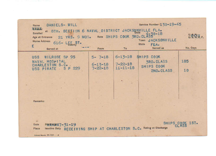 Florida. Military Dept. Will Daniels. . State Archives of Florida, Florida Memory. Accessed 25 Dec. 2025.<https://www.floridamemory.com/items/show/219293>